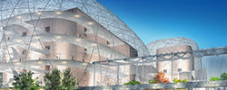 広島カープ旧球場の建替え。駅に近いアクセスの良さ、利便性を表現。
