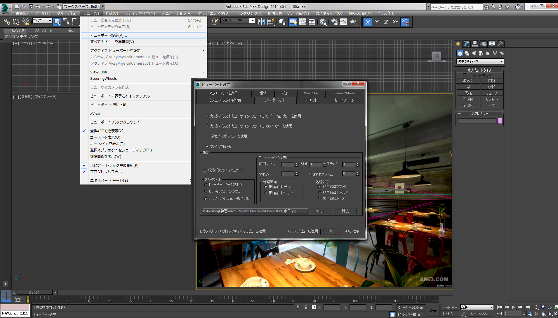 次は透視図の画像を3DsMAXの背景に読み込みます。