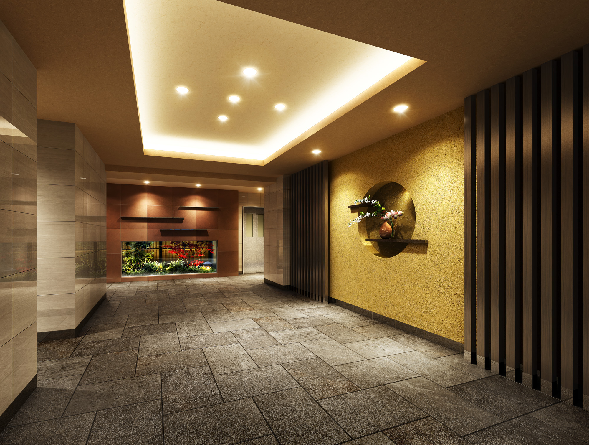 作業中は感じないのですが、最後にこれらの調整を行うことで補正前の絵のくすみのような雰囲気に気づいたりします。好みの問題や物件毎の雰囲気もありますので、絶対的にこの調整が正しいというわけではありませんが、今回に関しては絵にメリハリを持たせる事で、全体的に抑え気味の照明で落ち着いた雰囲気の中、壁面のライトや奥の坪庭に目がいくようになったと思います。