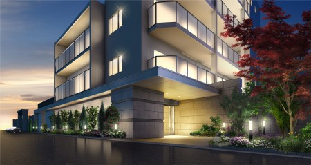 マンション-夜景エントランス外観のCGパース作成-②仕上げ