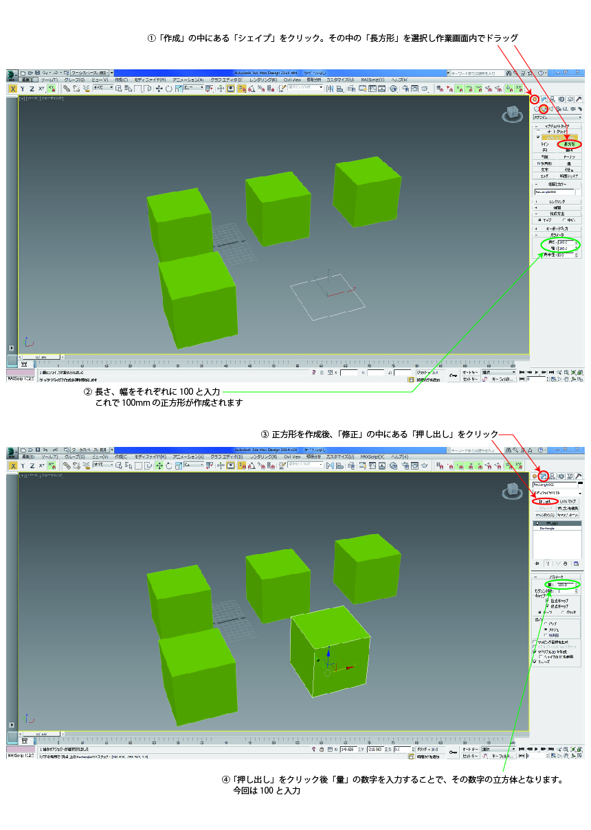 3dsmaxで立方体を作る1つ目の方法