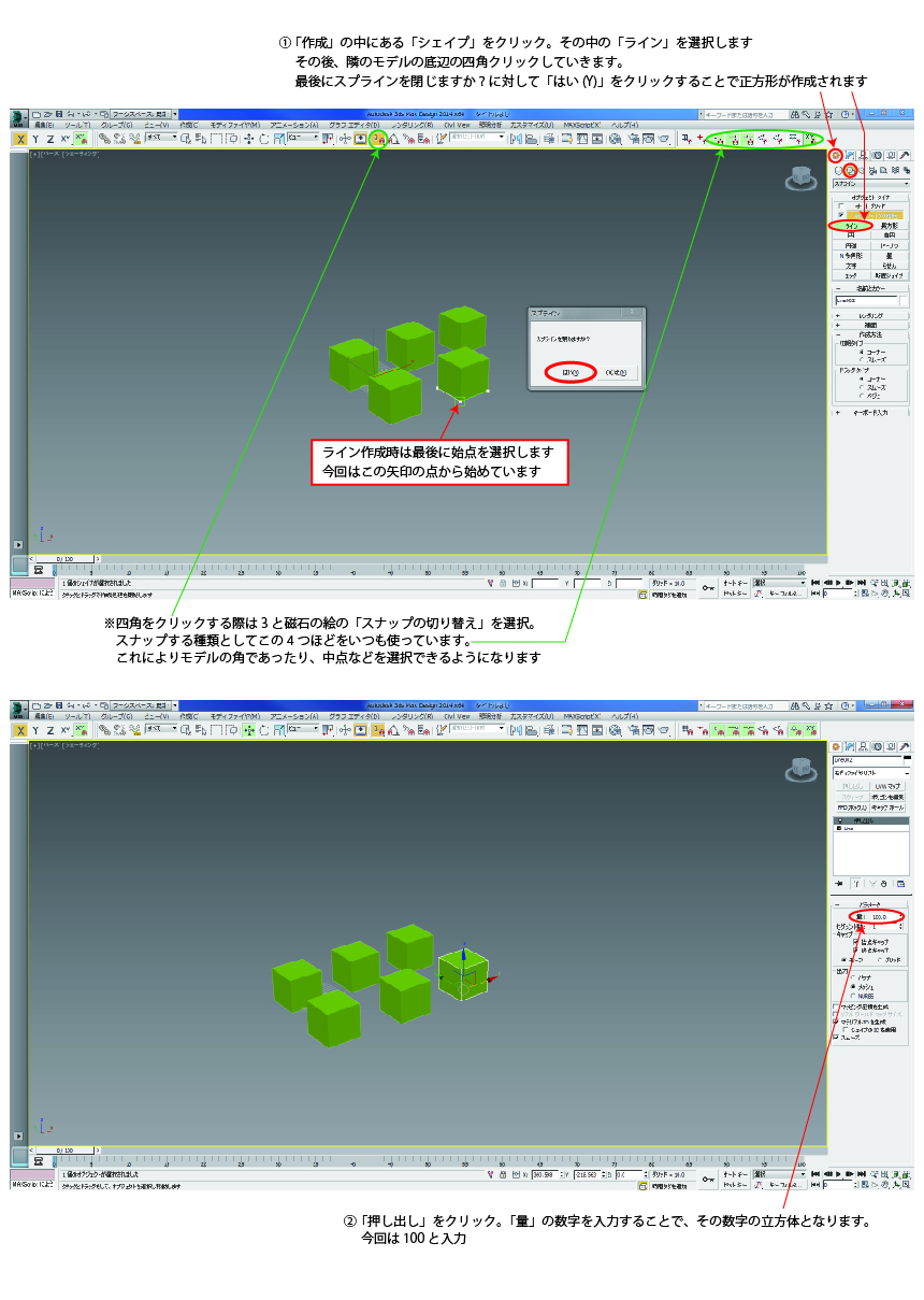 ボックス・長方形・ライン3種類を用いた3dsmaxでの立方体の作り方