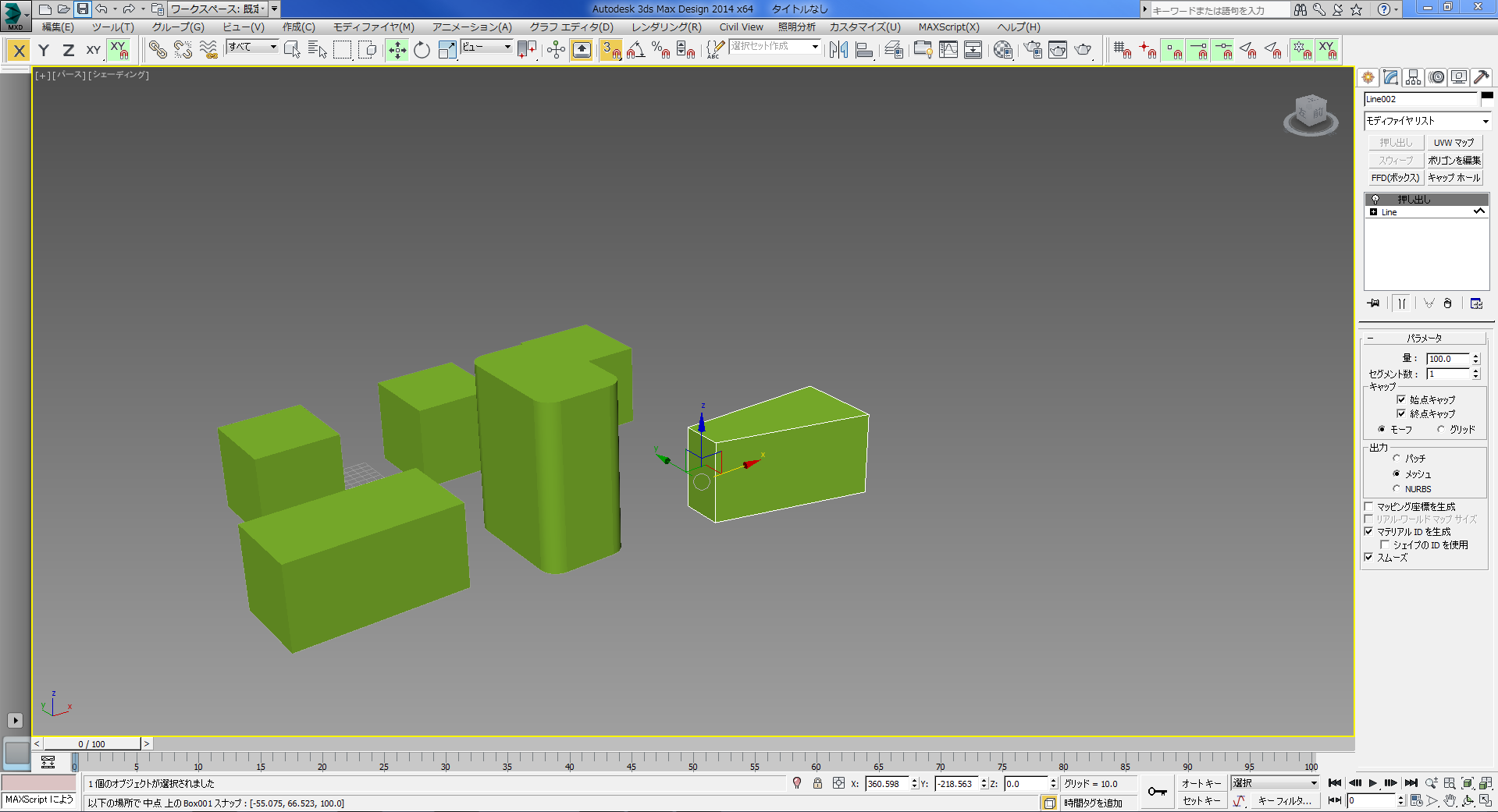 ライン+押し出しで作った立方体の編集方法