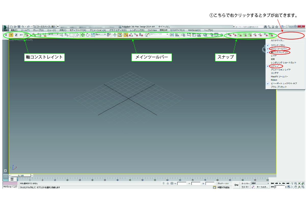 まず始めに使用する3dsmaxでのツールバーの設定です。