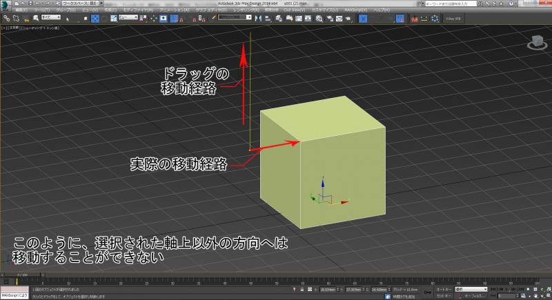 ご覧ように、有効になっている軸上でしかモデルを移動することができません。