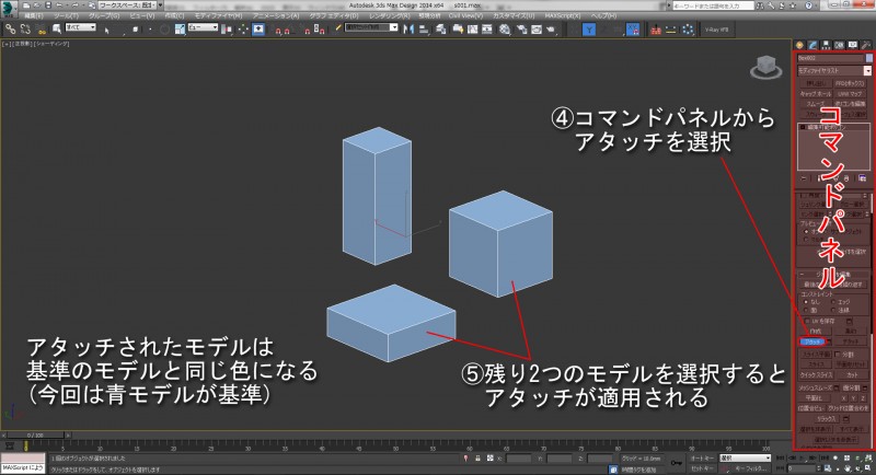 3dsmaxでのアタッチの作業手順