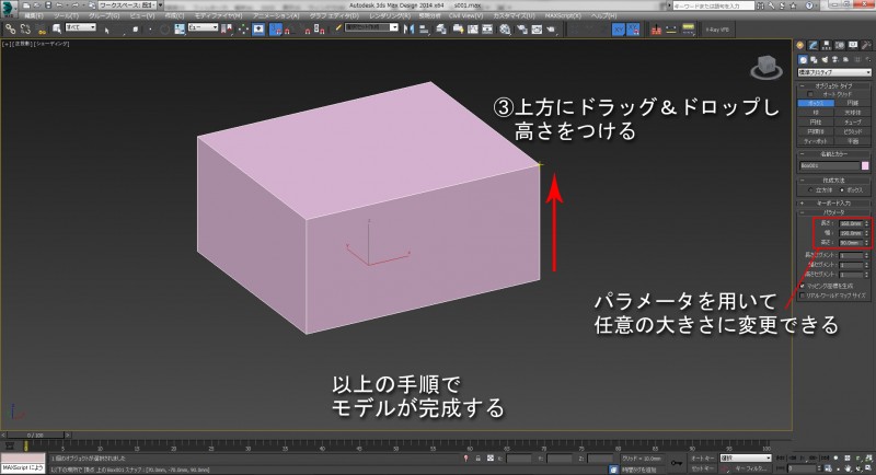 ここからさらに高さの分をドラッグ&ドロップすることでモデルが完成します。