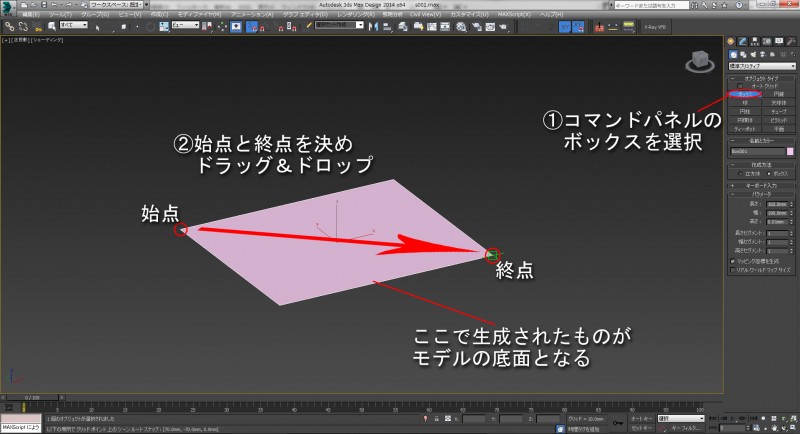 まずコマンドパネルより「ボックス」を選択します。