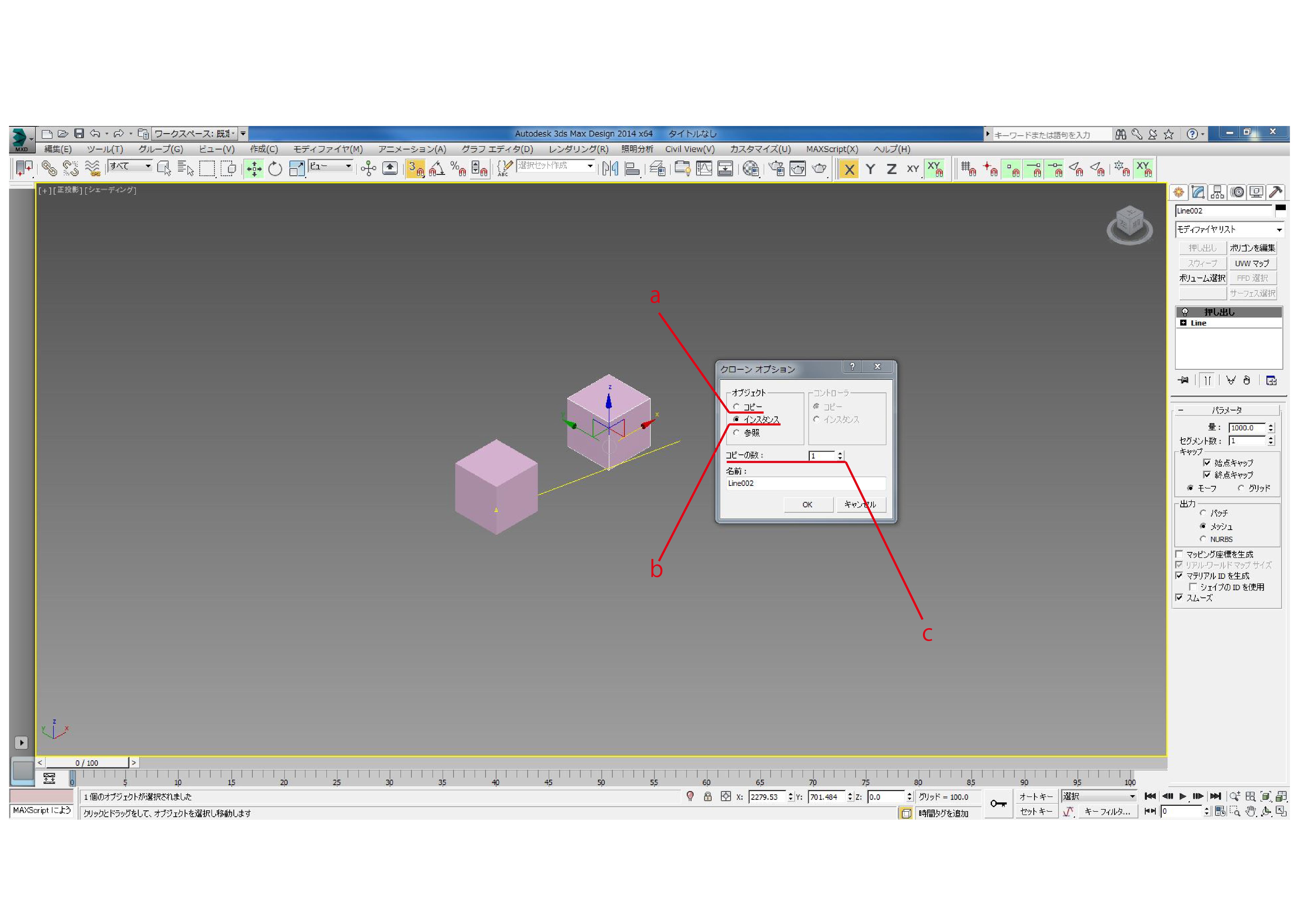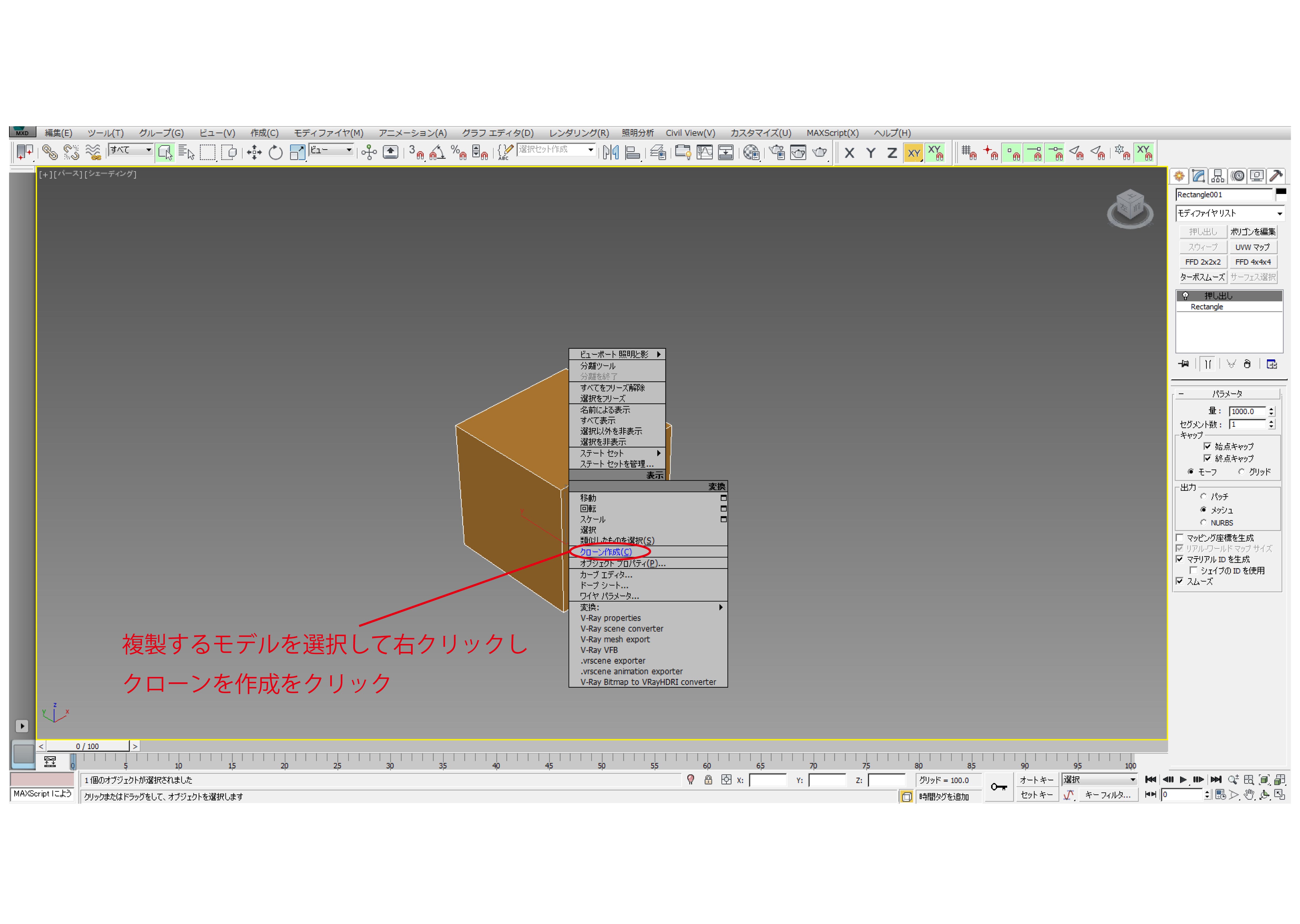 ②3dsmax、右クリックからのモデルの複製方法