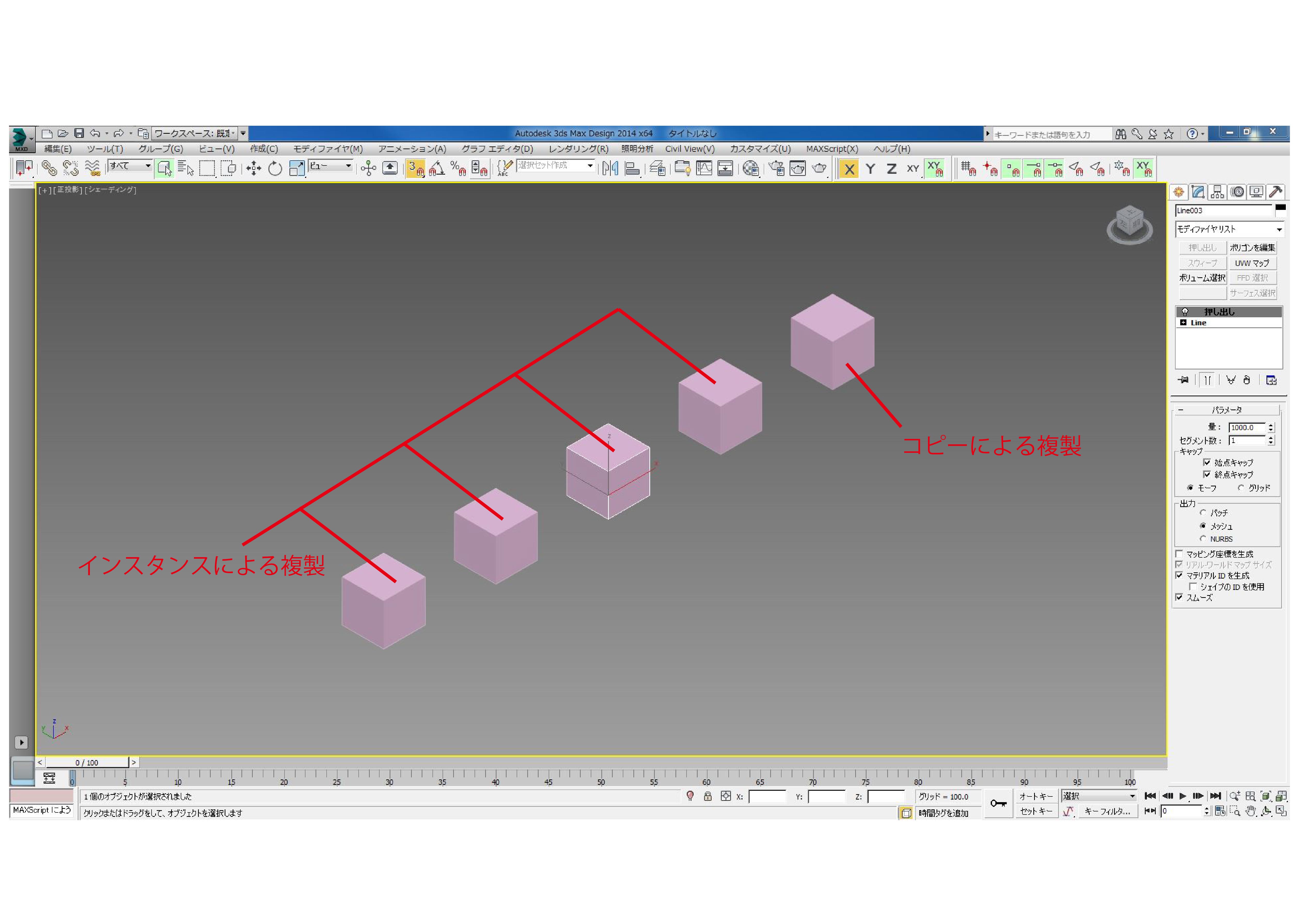 ①3dsmaxでの、移動によるモデルの複製方法