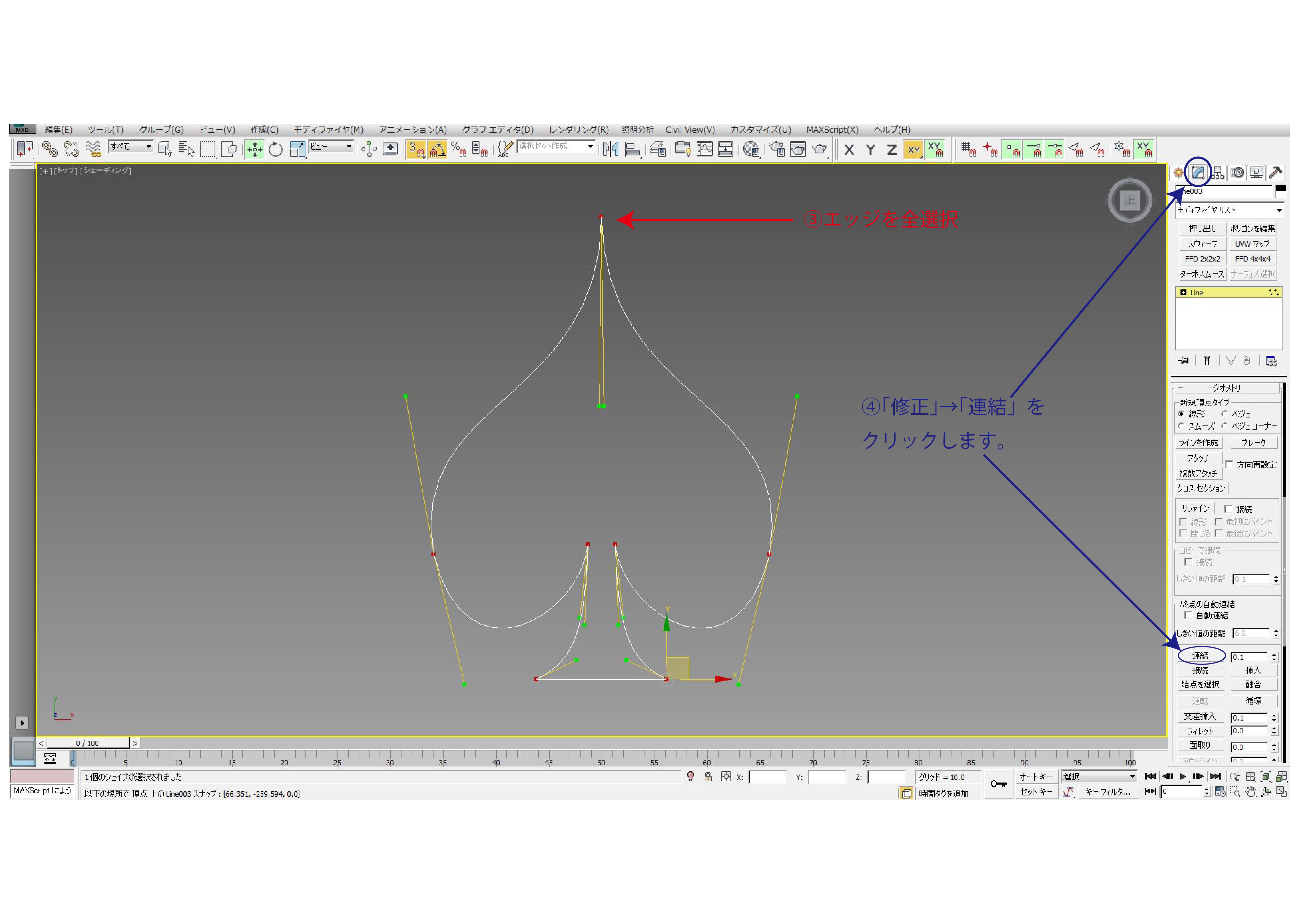【3dsmax初心者向け】ラインのアタッチ、連結方法を解説