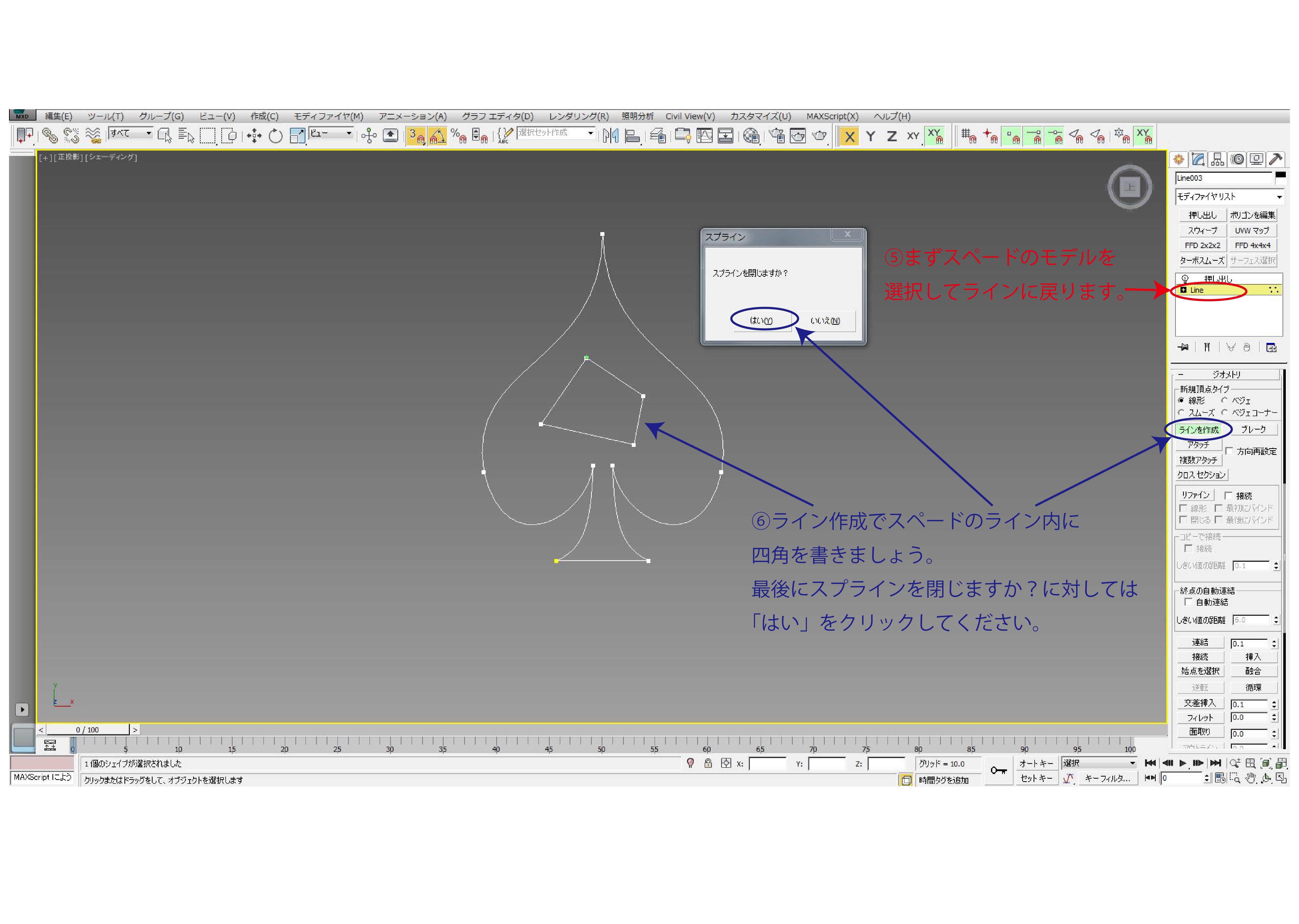 ⑥ライン作成でスペードのライン内に四角を書きましょう