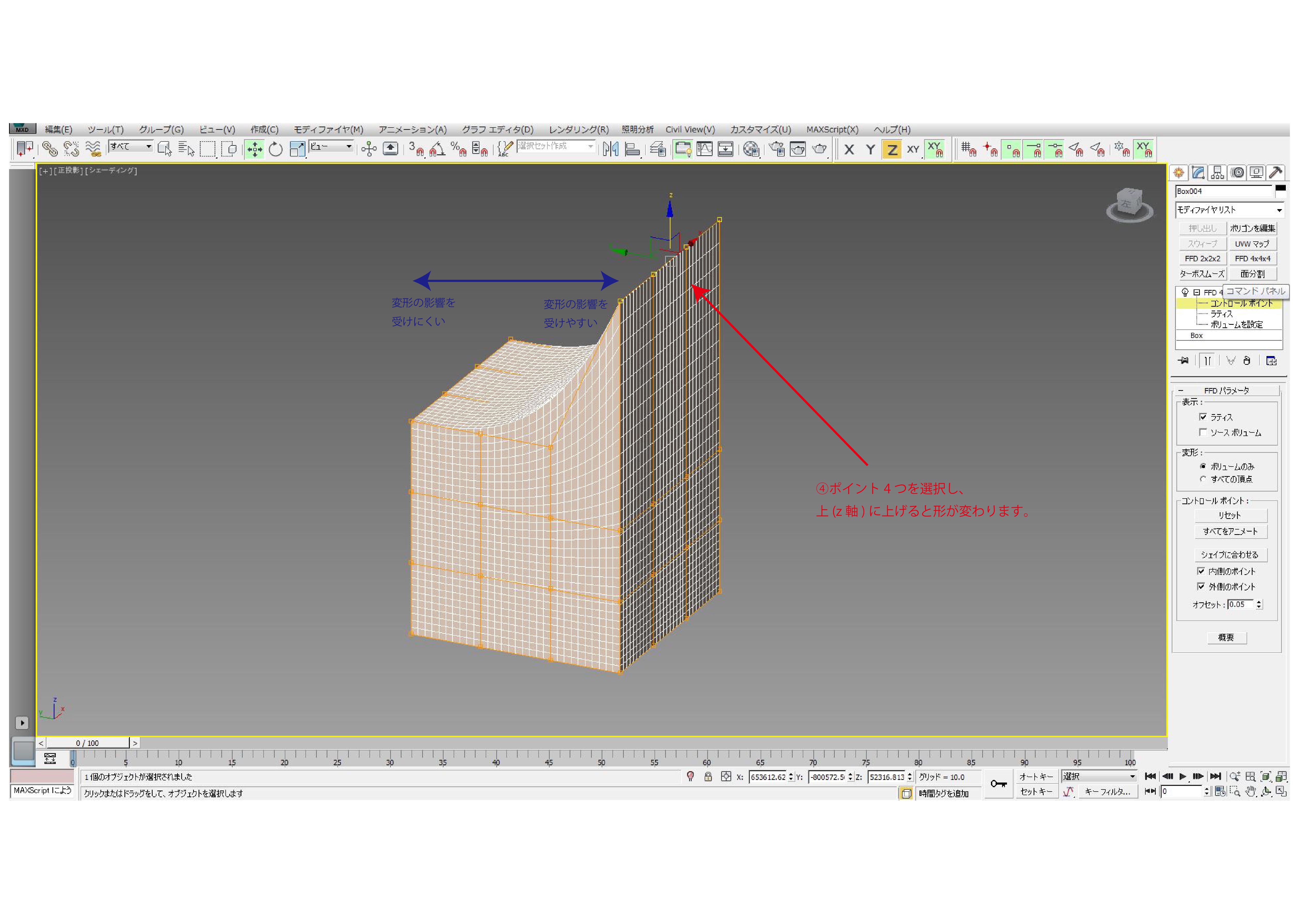 ちなみにFFDとはFree-Form Deformation(フリーフォーム変形)の略です。