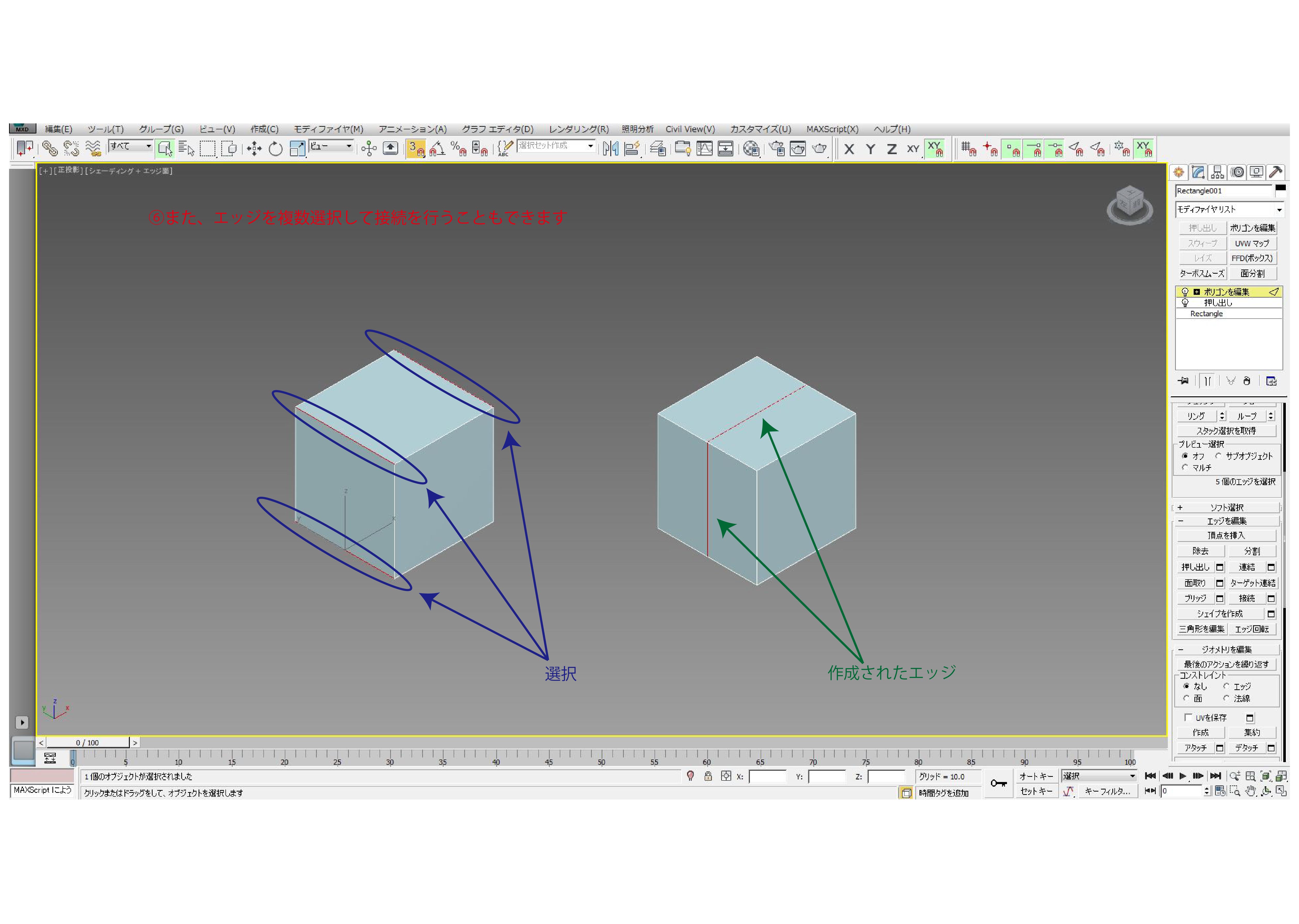 今回はポリゴン編集の機能「接続」と「クイックスライス」についてご紹介しました。