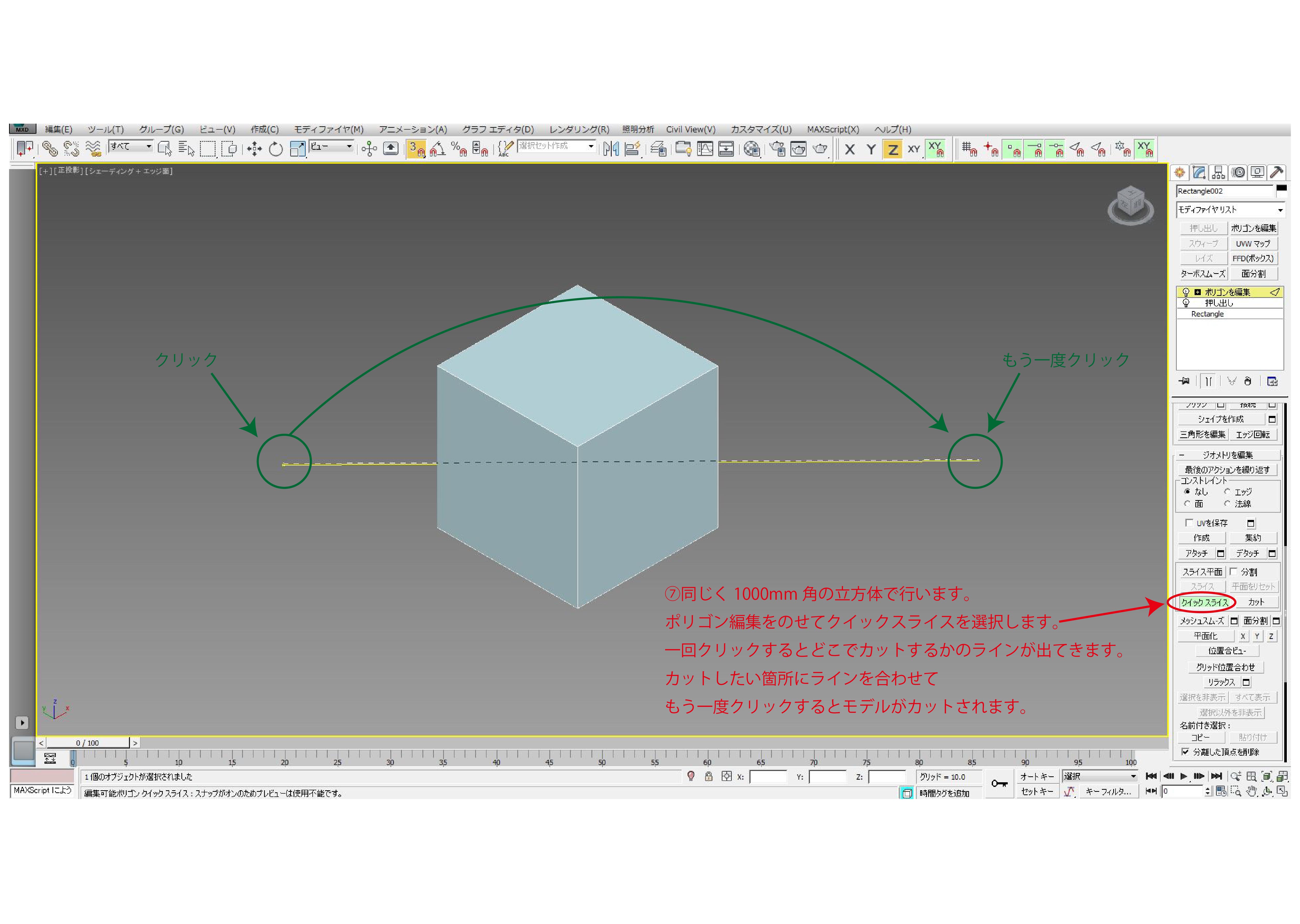 ポリゴン編集をのせてクイックスライスを選択します。
