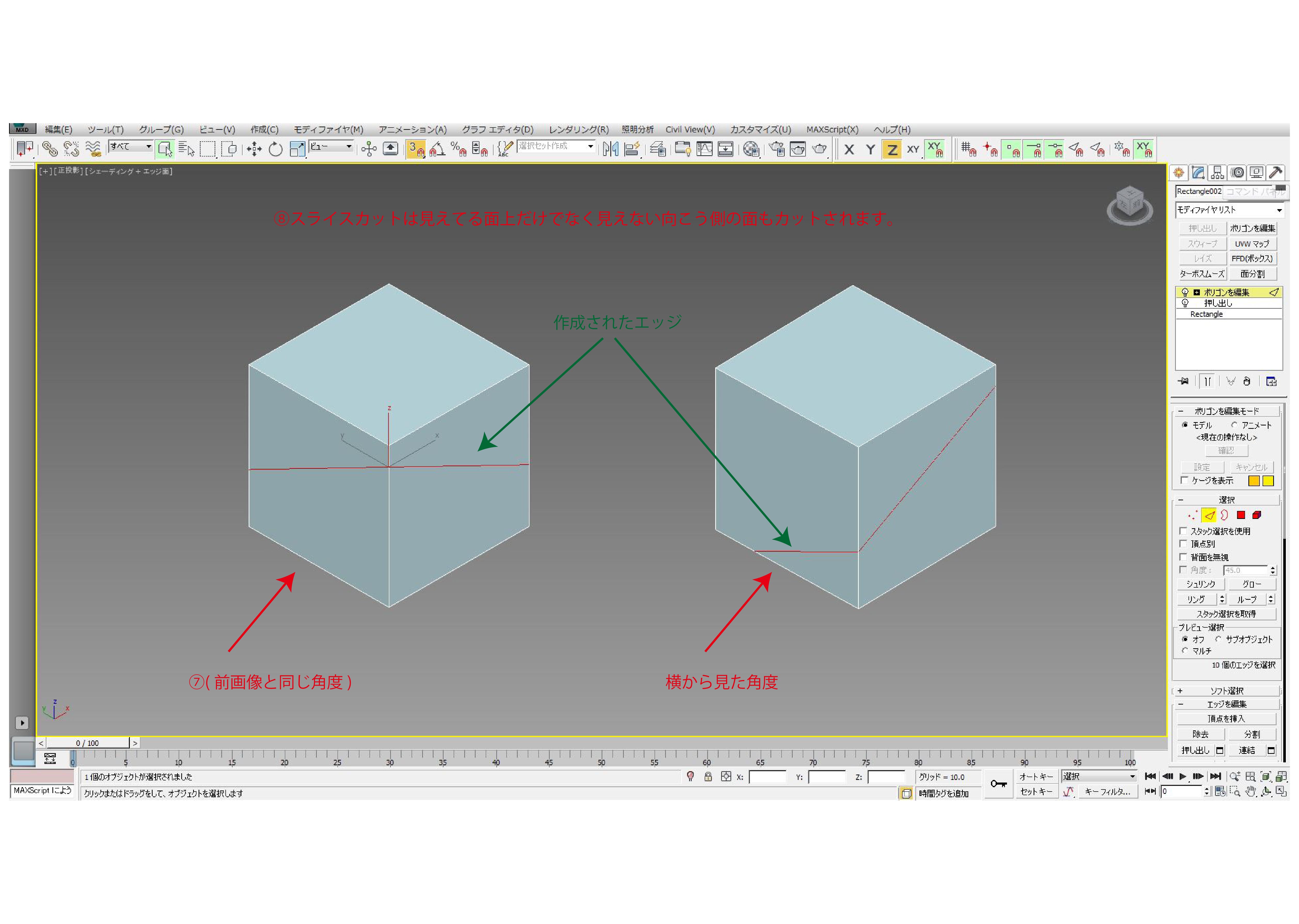 ⑧スライスカットは見えてる面上だけでなく見えない向こう側の面もカットされます。