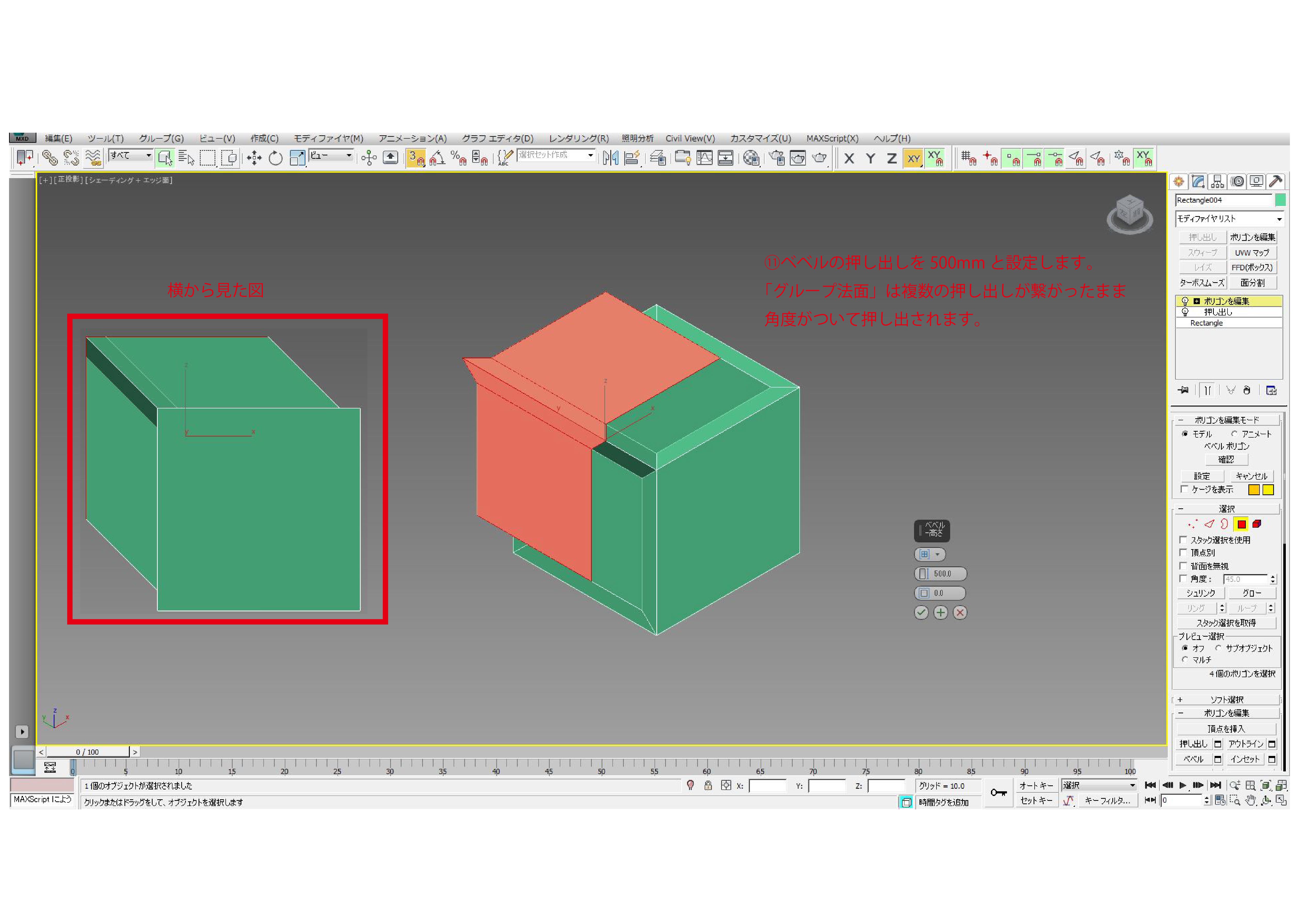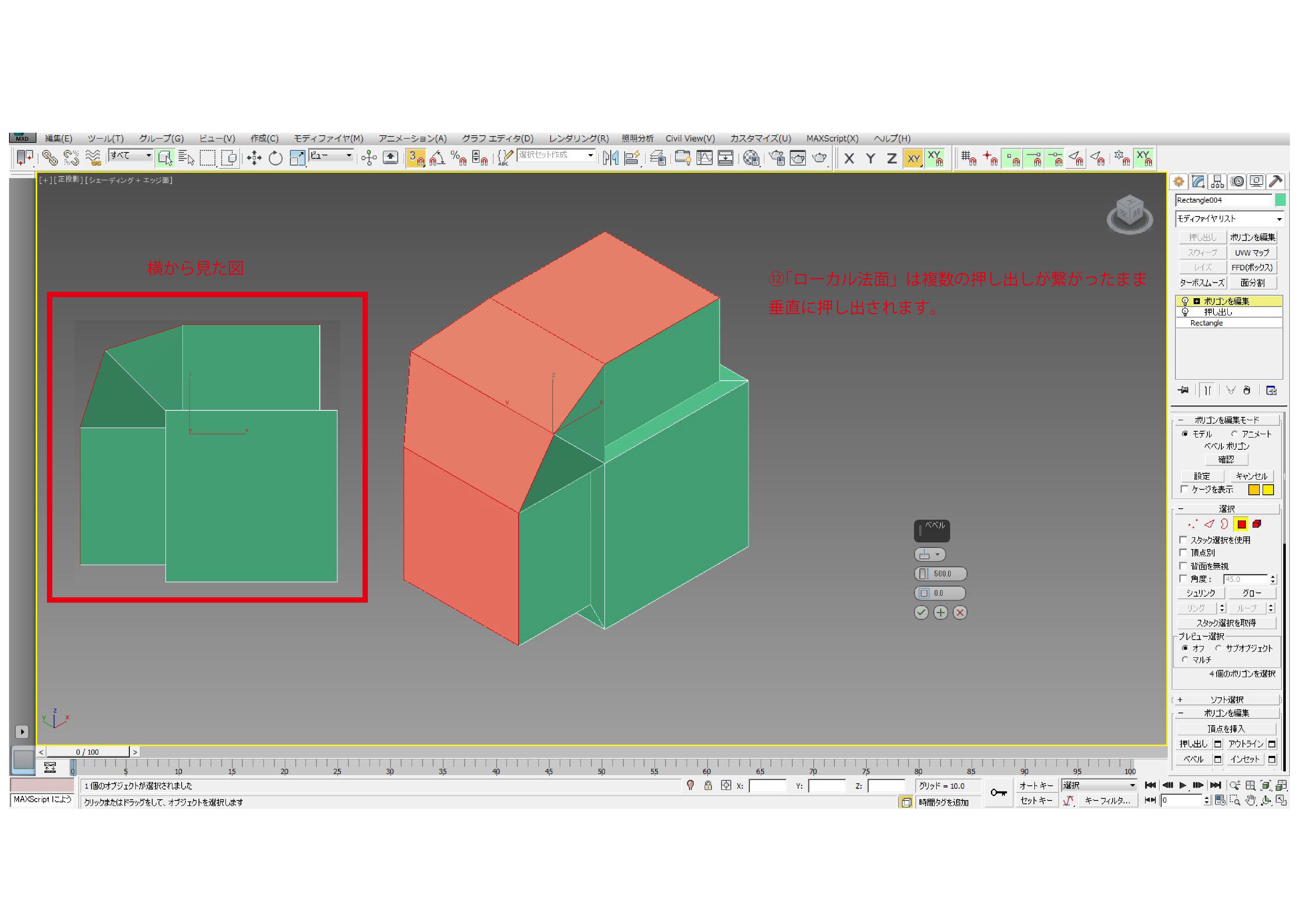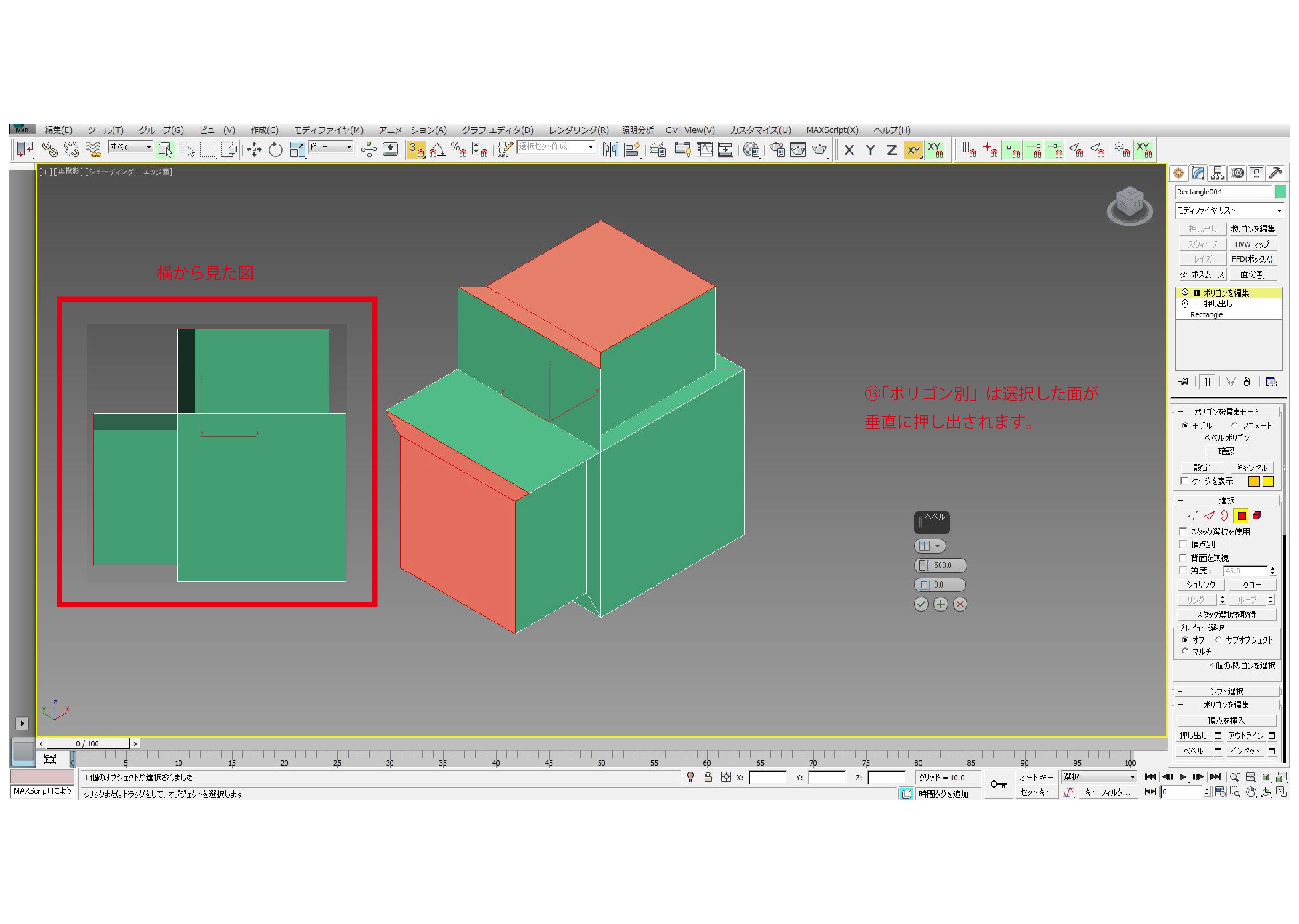 ポリゴン編集での押し出し方法