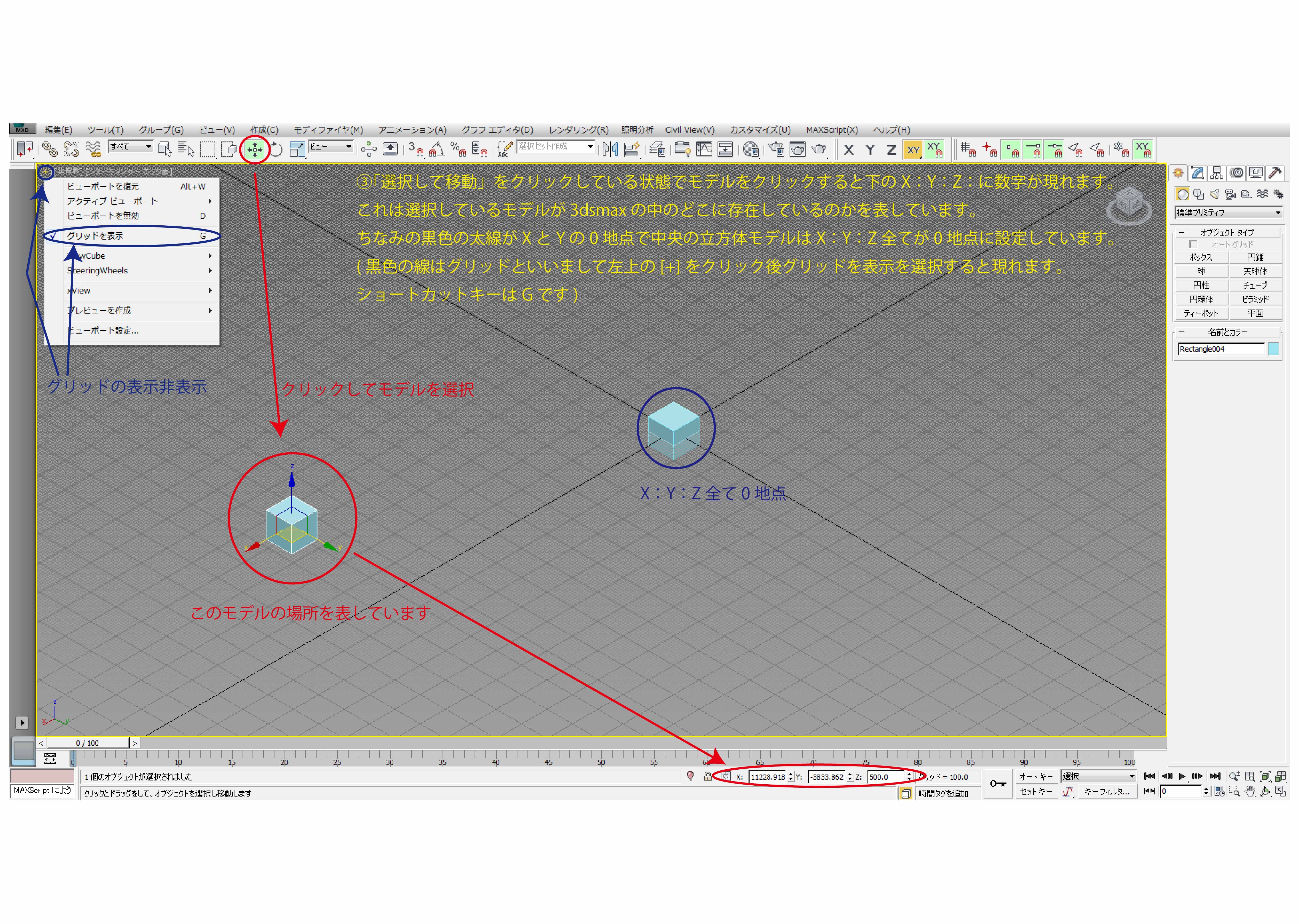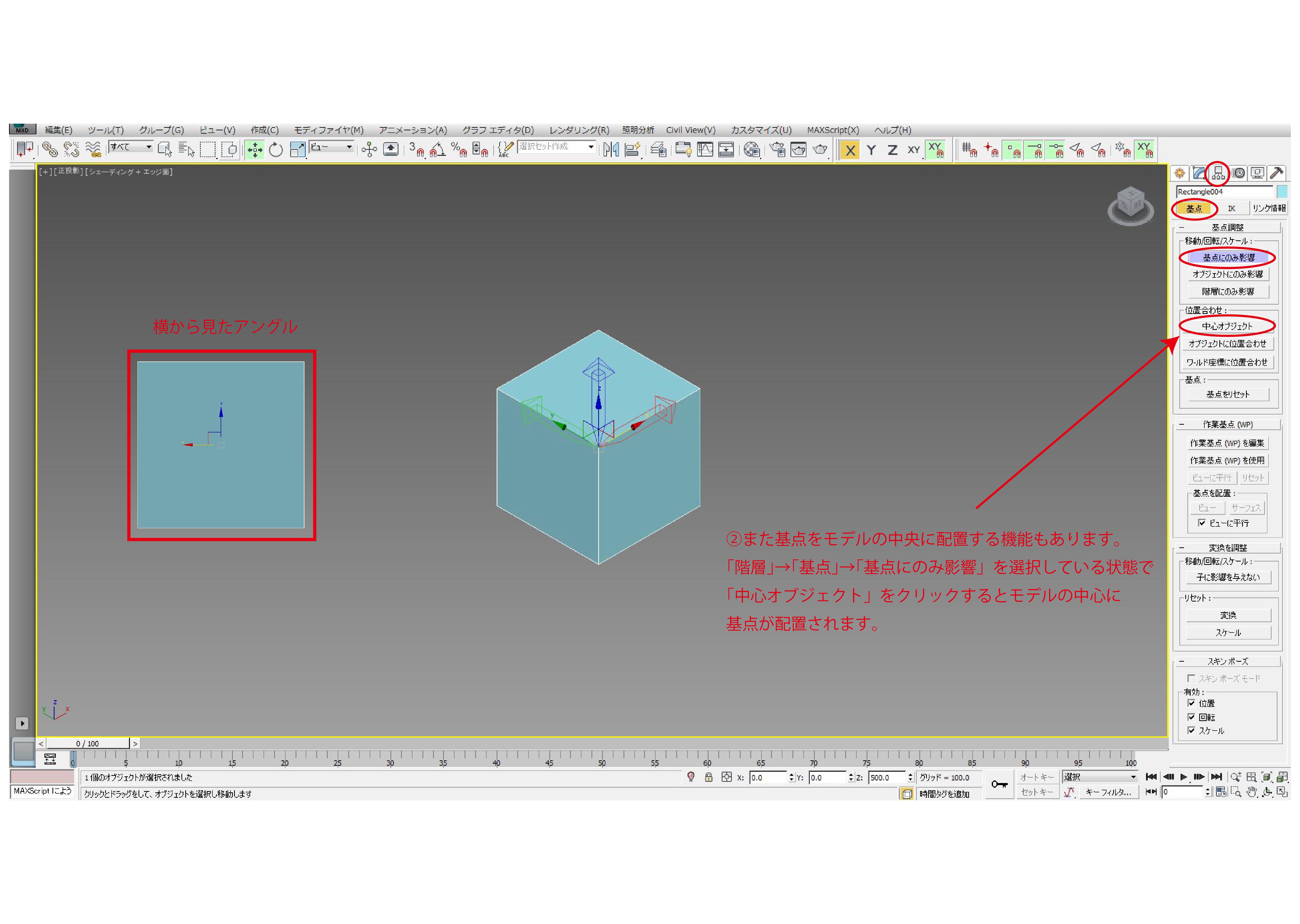 【3dsmax初心者向け】基点の移動、数値入力によるモデルの移動方法