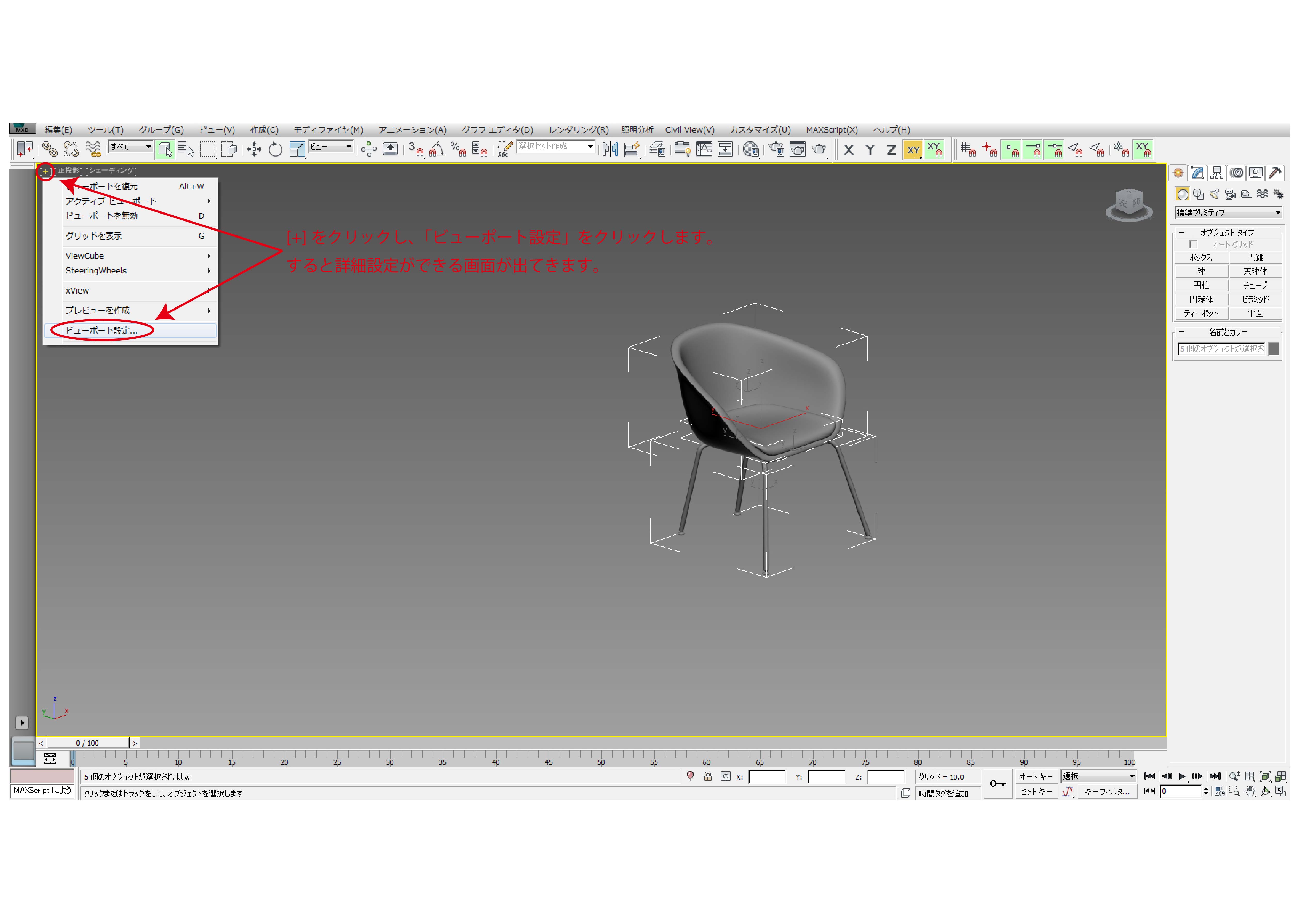 左上の[+]をクリックし、「ビューポート設定」をクリックします。
