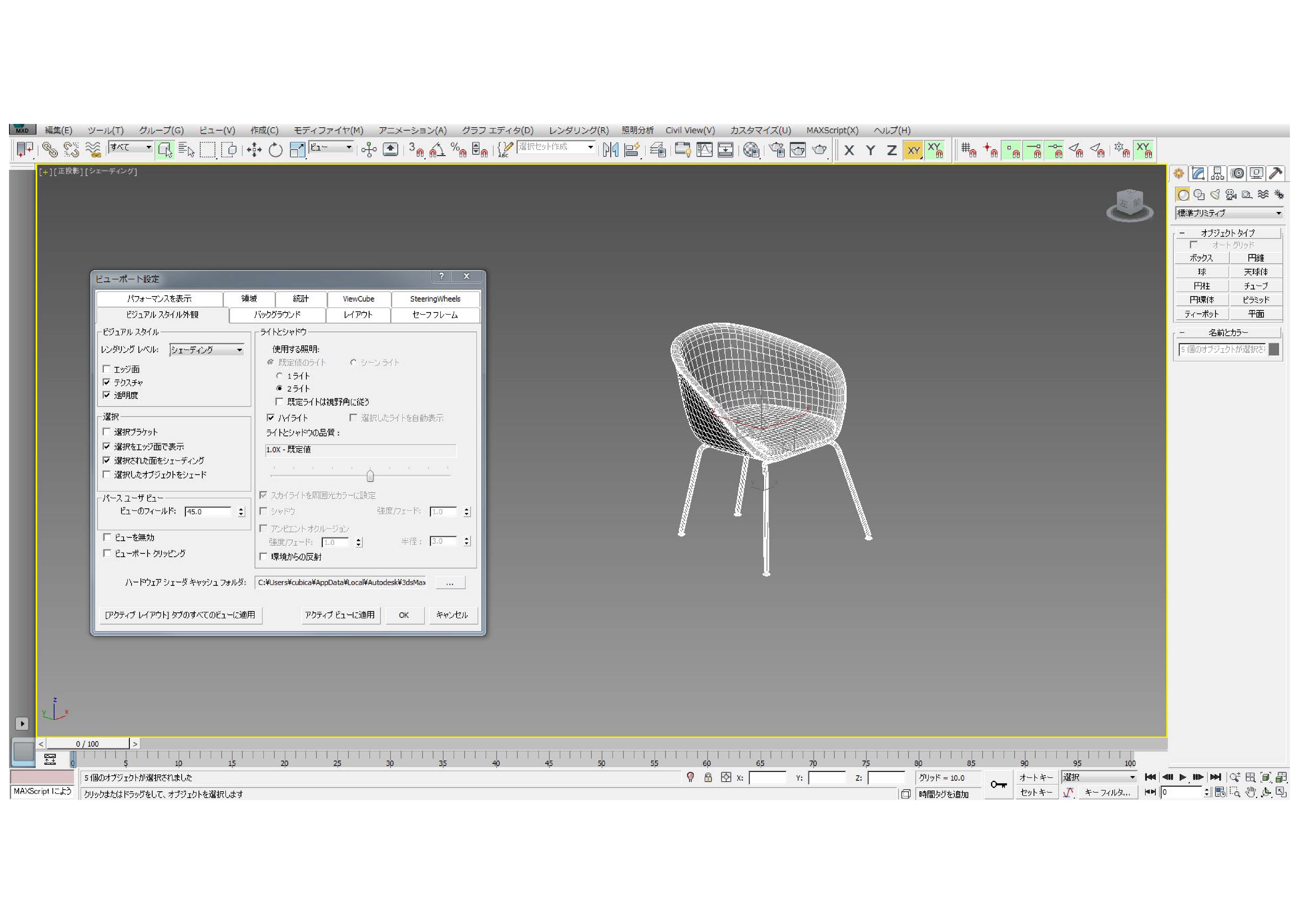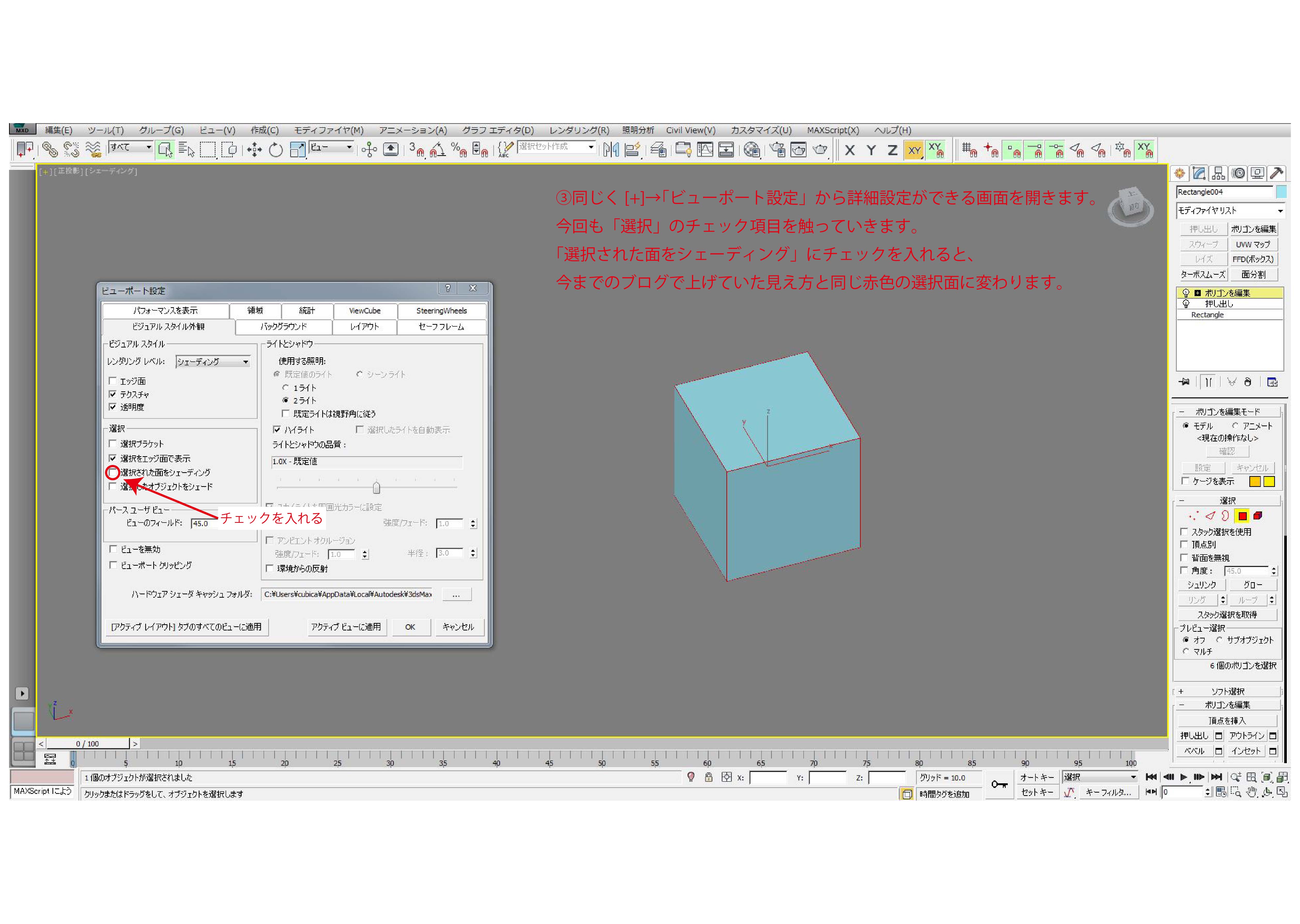 【3dsmax初心者向け】ビューポート設定でモデル選択の見え方を変える方法