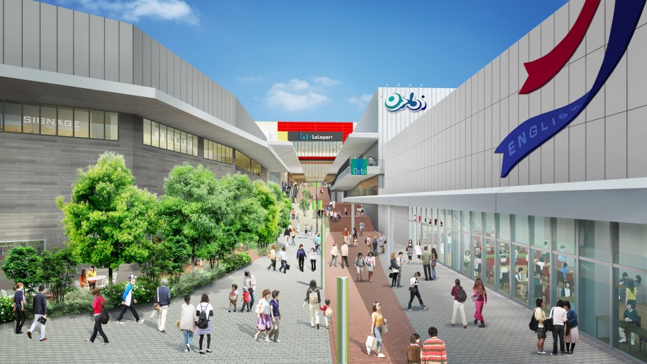 【建築パース】大型商業施設・三井不動産吹田エキスポ跡地(南側オープンモール)