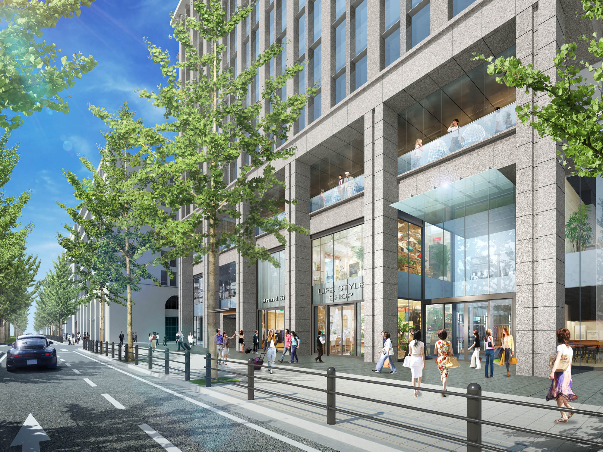 実際の写真とCGを複合して作成しています。建築パースで大切なポイントは、環境を表現しつつ、建築を表現することです。あくまで主役は建築物ですので、周囲の環境が前に出すぎないように配慮しています。